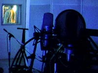 ヴォーカルブースはブルーのライトで幻想的な感じ